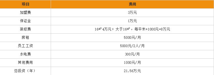 当然,如果是个人投资开店,有足够的人手,就可以省却员工工资的费用,那么总投资费用会有相应的减少。SRY加盟号