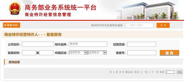 既然度娘不给我答案,连叔只能使用老套路。根据法律规定,连锁加盟品牌应进行特许经营备案。因此连叔从两方面入手:1、查连锁加盟(特许经营)备案信息,看哪家备案了;2、查商标信息,看谁注册了商标。